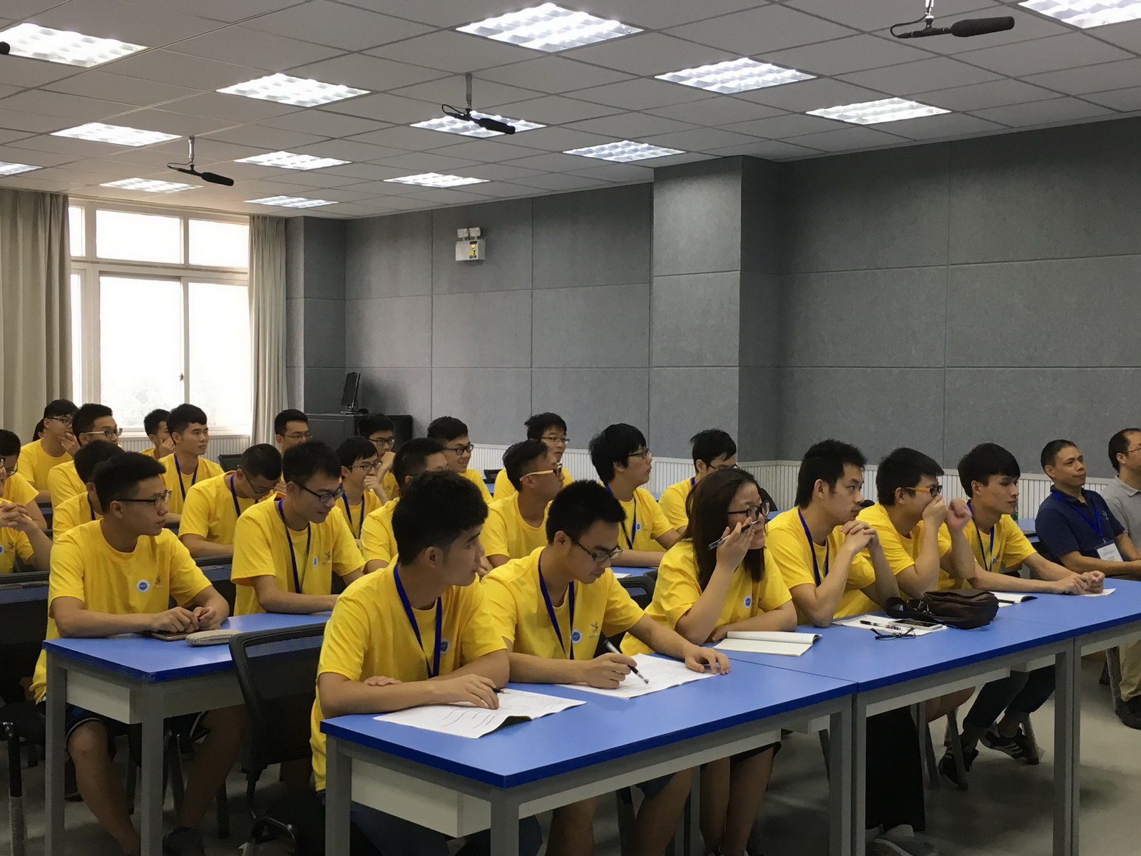 【本网讯】7月18日上午,爱体育网页版控制工程学院暑期国际教育周在1402教室开始授课。控制工程学院副院长蒋涛教授,测控教研室蒋世奇教授,自动化教研室付克昌副教授,出席了此次活动。学院14级36名学生身着统一的服装,精神饱满地期待李耀老师授课。