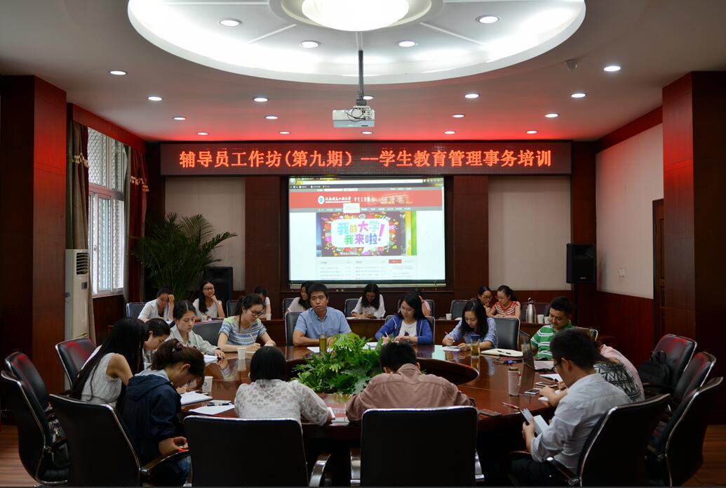 【本网讯】9月24日下午,辅导员工作坊(第九期)——学生教育管理事务培训在航空港校区第六会议室举行。学生工作处处长戴丽红、副处长潘光林、学生工作处相关人员,各学院学生工作办公室主任、副主任、分管奖学金辅导员和2016年新进辅导员参加了此期工作坊。