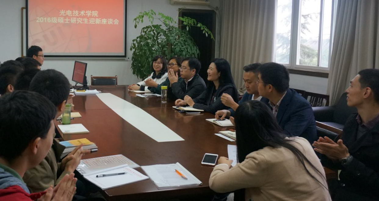 【本网讯】为加强对硕士研究生的培养和管理,促进师生交流,光电技术学院于10月11日上午在信息楼312召开2016级硕士研究生迎新座谈会。党总支书记王嵩,研究生处副处长唐婷婷,2016级导师,党政办、学工办主任,辅导员及教学秘书出席座谈会,全体2016级新生参加了迎新座谈会。会议由党政办主任陈川主持。