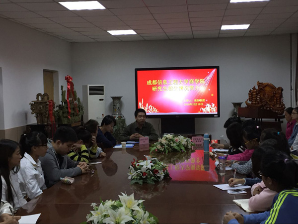 【本网讯】10月18日—19日,商学院教师张恒代表商学院与兰州城市学院商学院、甘肃政法学院经济管理学院和甘肃农业大学经济管理学院进行研究生教育交流。对方学院领导及在校大三和大四的学生出参加了交流活动。张恒介绍了学校研究生教育的情况,研究生培养的专业和方向,学院的师资队伍,以及学校和学院对研究生招生的政策。各学校的学生与张恒进行了信息沟通,鼓励他们报考我校及我院的研究生。