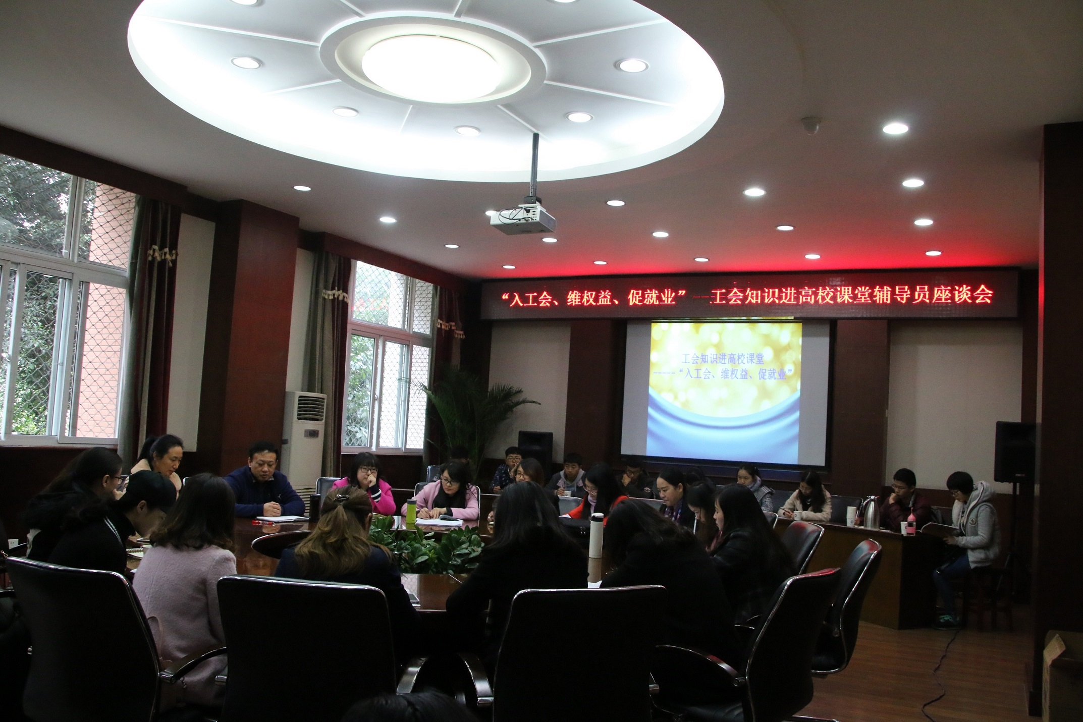 11月10日上午校工会在行政楼第六会议室开展了以“入工会、维权益、促就业”为主题的座谈会,部分大四辅导员和就业指导课的老师,毕业班学生代表参加了会议。座谈会首先由政治学院曾利老师讲解工会的基本知识以及学生在就业中涉及到的工会法律知识,通过对诸多案例的分析、讲解使老师与同学们充分理解了工会知识,曾利老师耐心回答了老师及同学们关于就业、创业过程中维权的一些疑问。