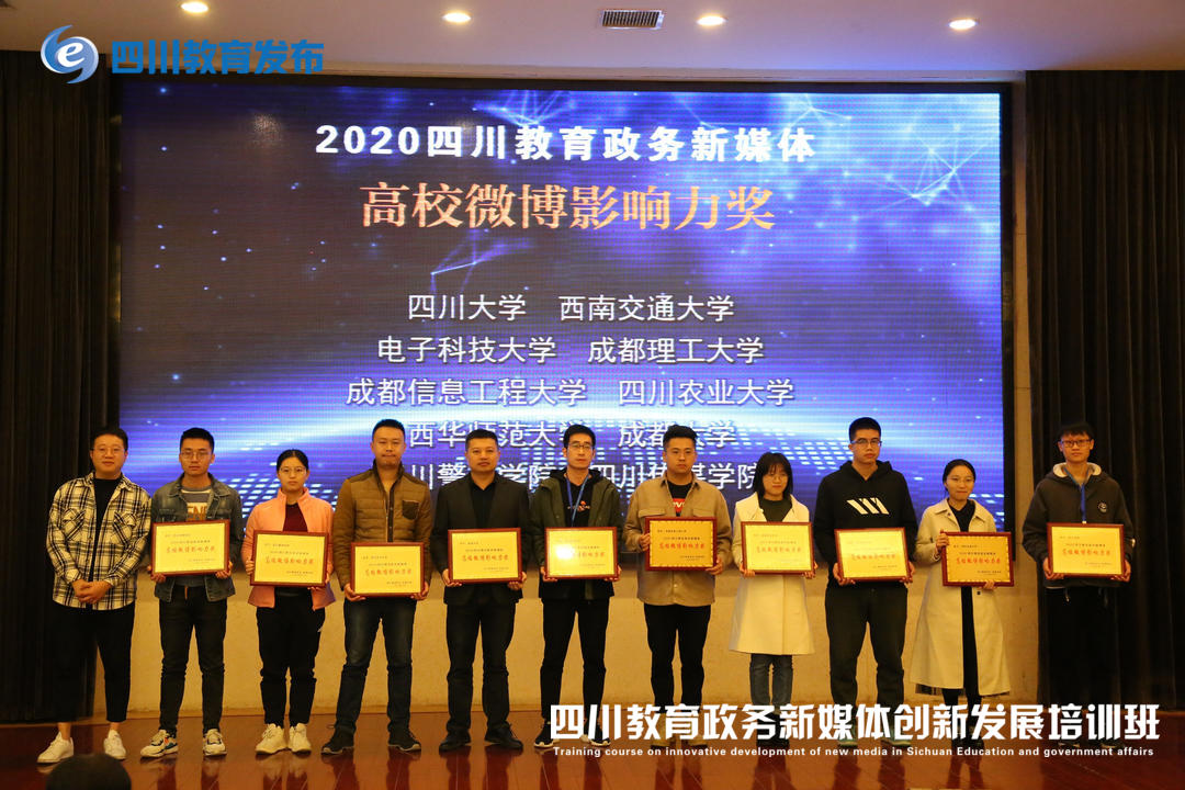 【本网讯】10月29日—31日,由四川省电化教育馆(四川省电视台)主办的四川省教育政务新媒体创新发展培训班暨年度优秀教育政务新媒体平台表彰大会在西南交通大学峨眉校区举行。四川地区近百所高校,地方教育局、体育局、电教馆等有关部门负责人共计200余人参加了本次大会。大会表彰了2020年四川省教育政务新媒体优秀单位,我校荣获2020年四川省教育政务新媒体“高校微博影响力奖”。