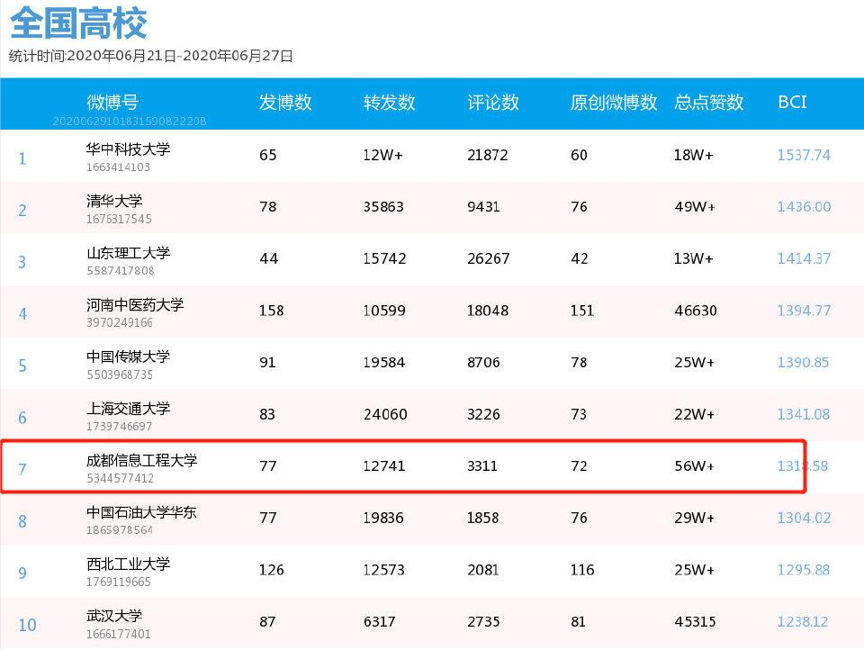 学校新媒体始终以习近平新时代中国特色社会主义思想为指导,坚持互联网思维模式,将传统媒体和新媒体并肩发展,进一步增强党对新媒体发展的统筹领导,建好、用好、发展好全维度网络思想政治育人平台。打造网络思想政治工作“朋友圈”,搭建全方位、多层次、多声部的媒体矩阵,让理论政策“活起来”,让师生热点回应“多起来”,让与校园网民的互动“暖起来”。近年来,学校官方微信、官方微博、抖音等新媒体平台围绕社会主义核心价值观、爱国荣校、时代责任、历史使命、青春向上等主题,发布“我和我的祖国”“榜样的力量” “最美成信” “微关注” “权威发布”等内容,不仅在师生中引起广泛关注,也被新华社、学习强国、共青团中央、中国教育报、四川日报、封面新闻、红星新闻、头条校园等各大媒体转发报道。在全国高校微博影响力排名中,“爱体育网页版”微博平台多次入围全国50强,最高排名全国第7名。在四川省高校排名中,基本保持前10名。