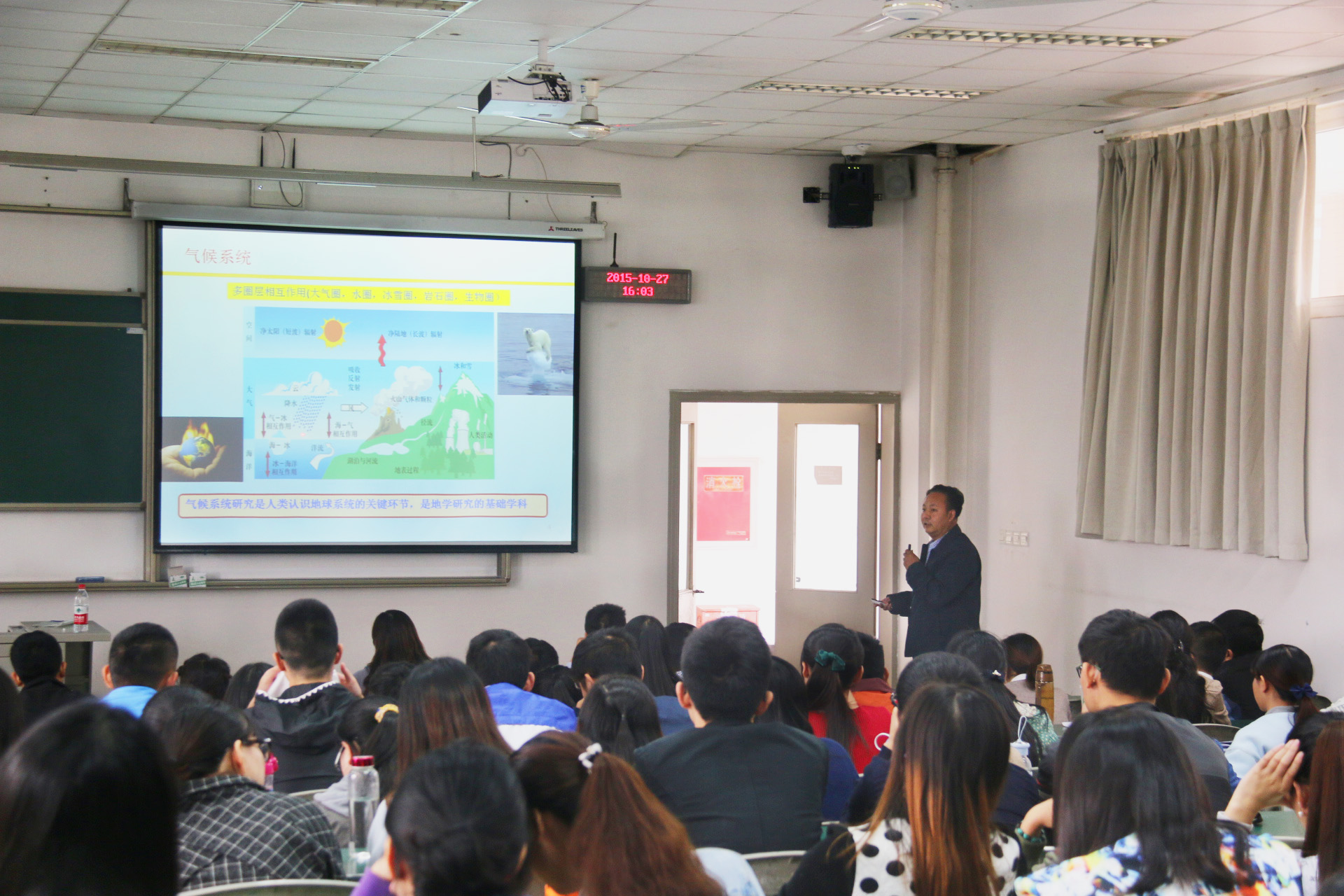 吕世华教授是我校今年引进的专家,主要研究领域为陆面过程与区域气候、大气边界层物理、大气环境与灾害性天气、气候变化数值模拟等。在报告中,吕老师深入浅出地为大家介绍了陆面过程研究的意义,相关观测实验的建立以及研究进展,向同学们展示了这一领域目前的前沿研究。