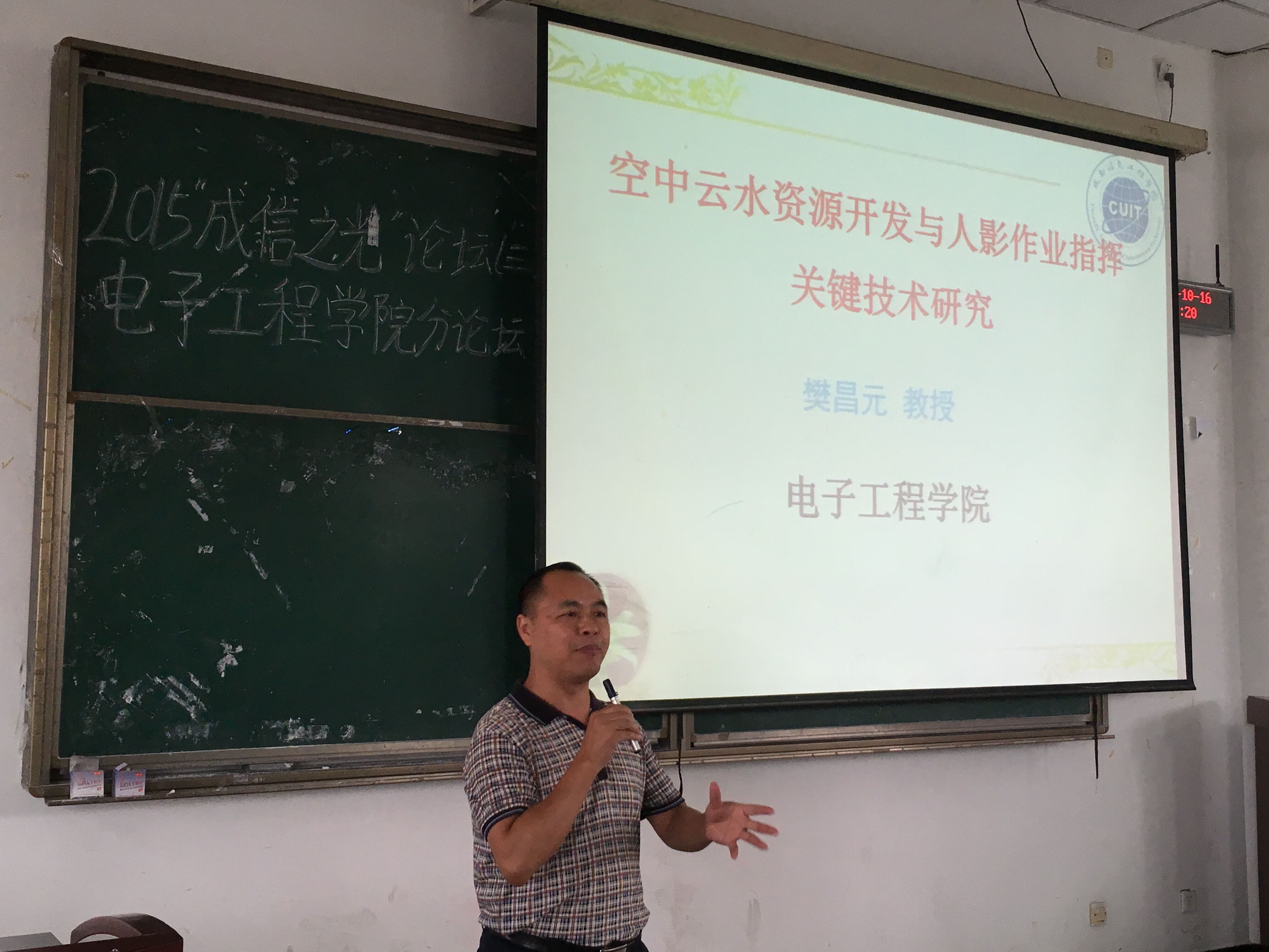 【本网讯】10月16日上午,“成信之光”论坛(三)之《空中云水资源开发与人影作业指挥关键技术研究》讲座在我校航空港校区4313教室顺利举行。本次论坛主讲为电子工程学院樊昌元教授。电子工程学院部分教师、在校研究生及部分本科学生参加了此次讲座。