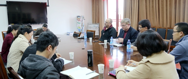 报告结束后,杨平教授一行与国际交流与合作处、研究生处、教务处以及相关教学单位的领导进行了讨论,包括本科生、硕士生的联合培养工作以及青年教师出访交流等内容。