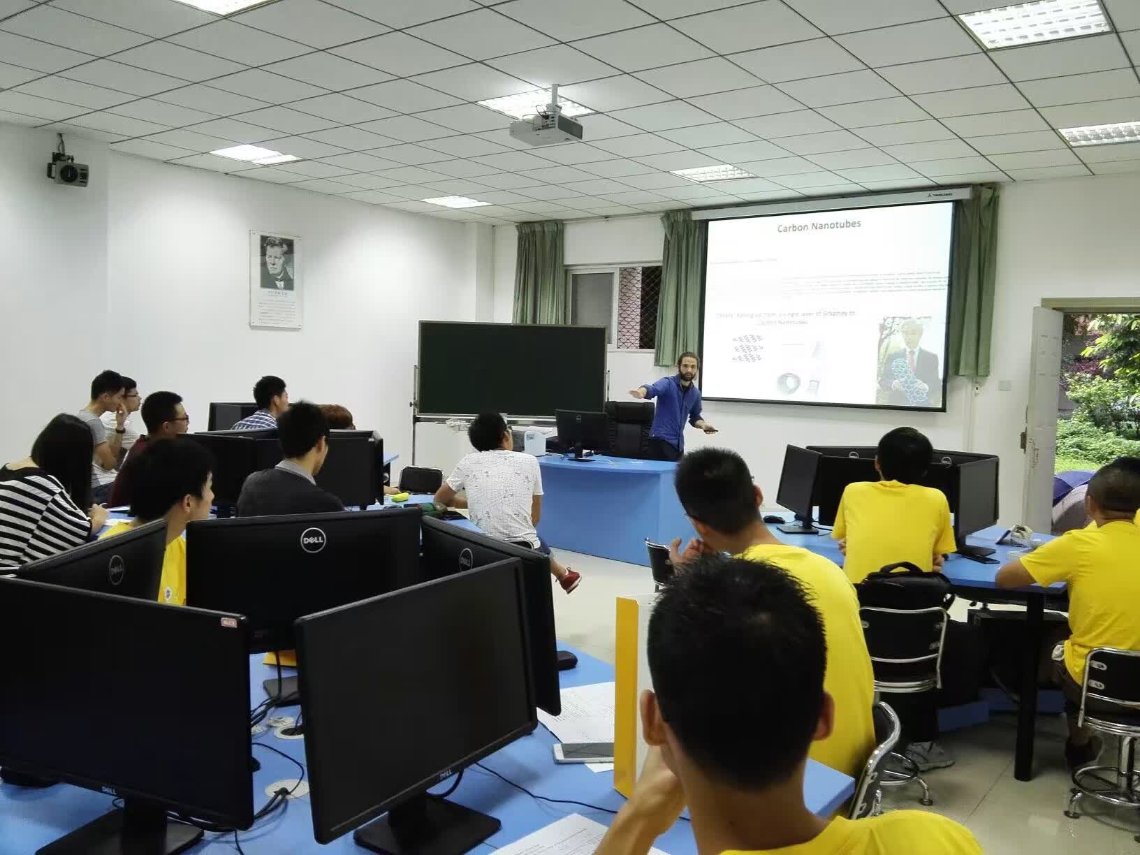 【本网讯】7月13日至7月20日,光电技术学院组织开展了暑期国际教育周活动。应邀而来的四川大学意大利籍副教授Filippo Boi讲授了共计16学时的课程,课程主题为“碳纳米管工艺、表征技术及其在自旋电子器件、数据存储及超导技术领域的应用”。Filippo Boi教授从相关基本概念出发,结合研究团队的科研成果,深入浅出地为同学们介绍了纳米材料发展、碳纳米管分类、磁性材料填充碳纳米管、磁相分析、碳纳米管生长机制、碳纳米管结构分析、泡沫碳材料和富勒烯与超导材料等内容。