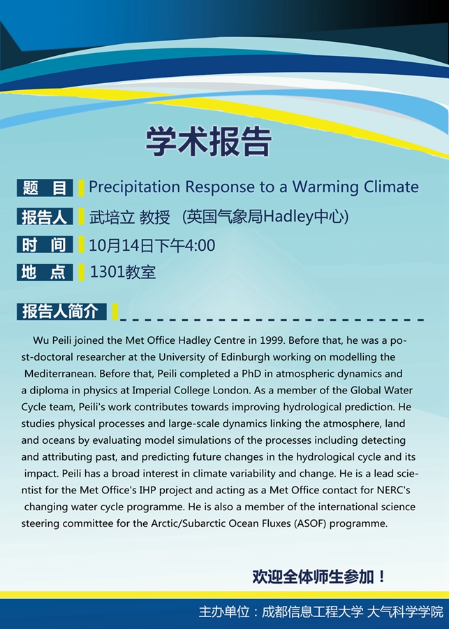 下一条:【学术预告】中国气象局副局长许小峰应邀到我校作学术报告
