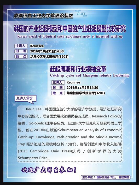 【学术预告】韩国首尔国立大学Keun Lee 教授:韩国的产业赶超模型和中国的产业赶超模型比较研究