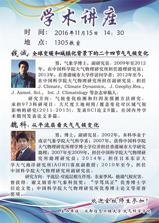 来源:大气科学学院 作者:尹欣  日期:2016-11-11  审核:新闻中心  点击: