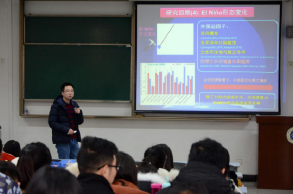 李扬的报告题目为《全球变暖对El Niño形态的可能影响》,他利用海洋资料,证实了CTM为El Niño提供了一个海温背景场,从而改变El Niño的形态。从El Niño温跃层反馈出发,提出了全球变暖背景下CTM抑制El Niño温跃层反馈的物理机制。