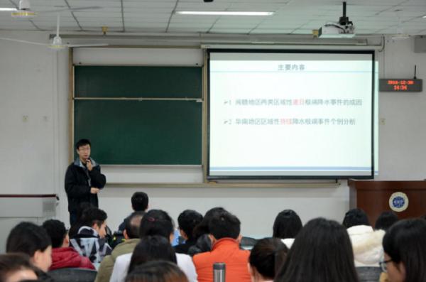 【本网讯】12月30日下午,大气科学学院在1301教室举办了第十六期研究生论坛。大气科学学院博士李明刚、李扬,14级研究生李蓉,兰州大学研究生焦腾腾、陈婕、李佳瑞受邀作学术报告,学院部分老师及研究生参加了此次论坛。