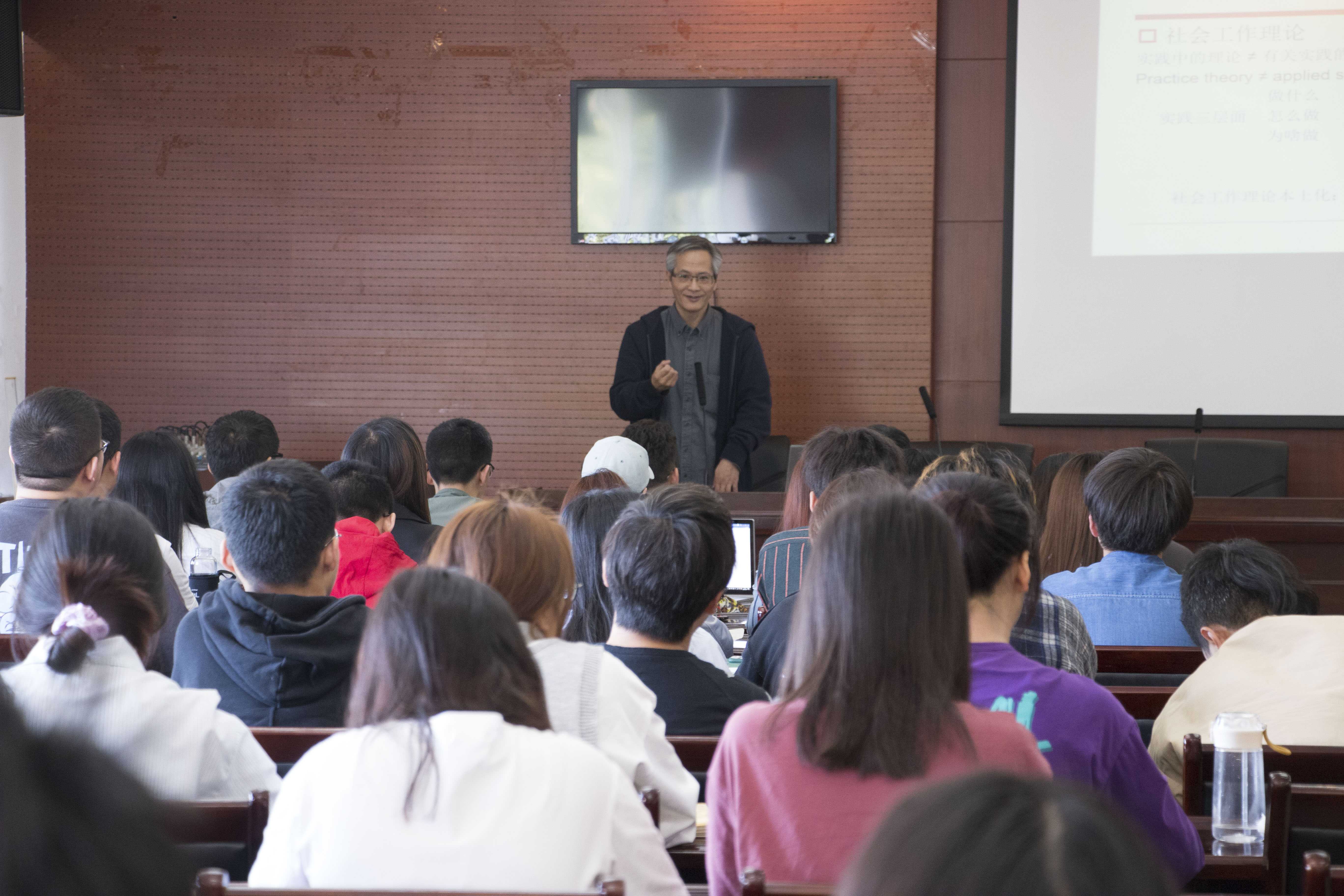 【本网讯】4月26日上午10:00,厦门大学社会与人类学院社会工作系主任童敏教授受邀到我校文化艺术学院作了主题为“社会工作理论的本土化:日常生活中的社会工作”的学术讲座。学院社会工作专业教师、硕士研究生、17、18、19级本科生聆听了讲座。讲座由文化艺术学院副院长徐翀博士主持。