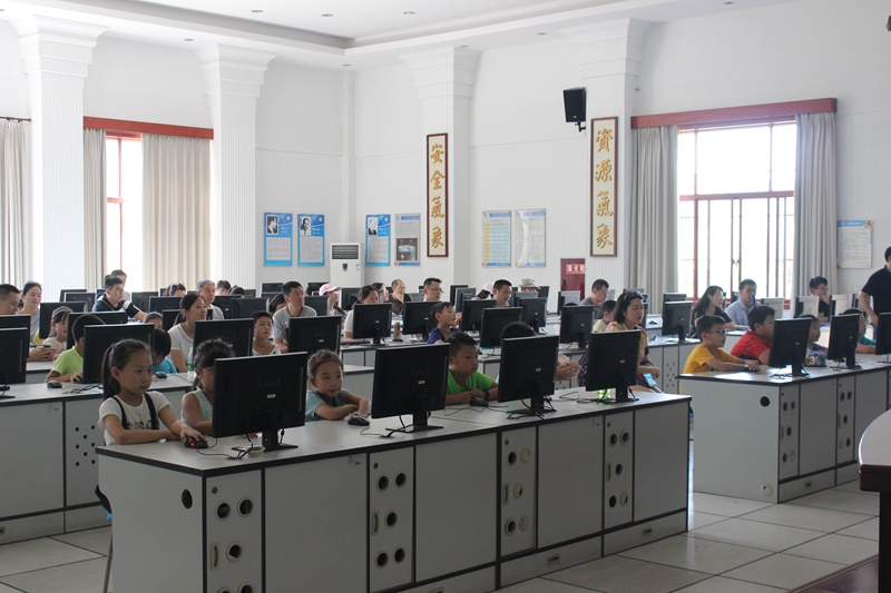 小朋友在天气分析与预报实验室认真听讲