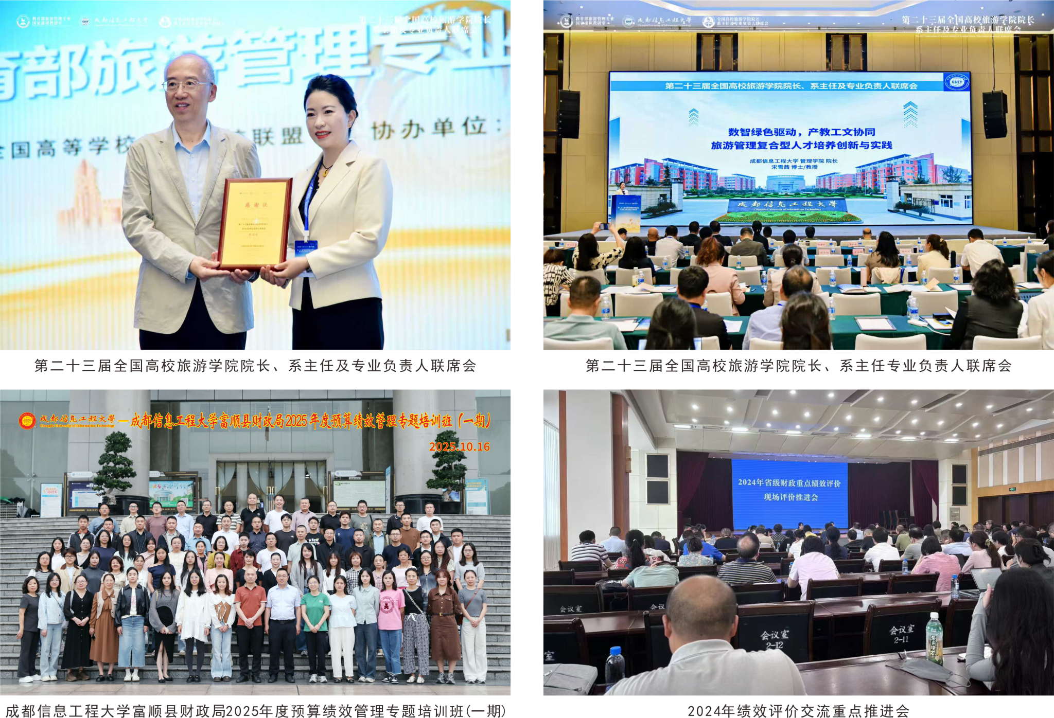 旅游管理与市场营销系教工党支部、人力资源与行政管理系教工党支部,与四川省民宗委,中国气象局公共服务中心、四川华电金川水电开发有限公司等开展项目合作,积极推动学校与大型企业如四川省人才集团等签约合作,积极推进学校与四川发展(控股)有限责任公司的战略合作,以产教融合提升人才培养质量,提升了社会影响力。2023—2024年,学院社会服务合同总额达1294万元。2025年主办第二十三届全国高校旅游学院院长、系主任及专业负责人联席会,来自全国170多所高校的400余位旅游行业专家、学者参与,为以“全方位创新助推旅游教育强国建设”为主题的交流搭建平台。