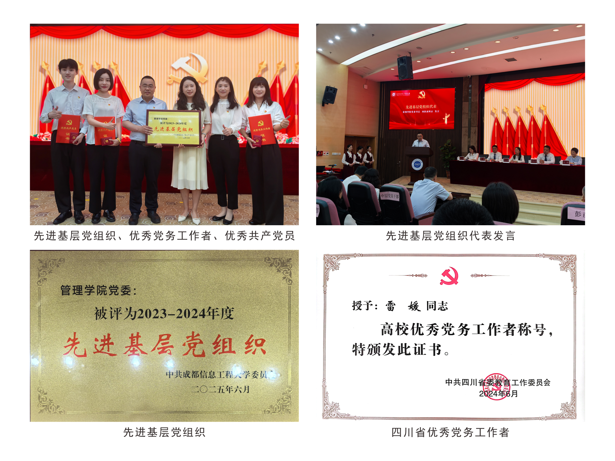 优化组织建设,凸显示范效应。顺利完成党委换届工作,优化支部组织架构,6个学生党支部按系专业划分,由优秀辅导员担任党支部书记;3个教工党支部实现“双带头人”教师党支部书记100%覆盖。近5年,成功创建校级标杆院系党委、2个校级党建样板支部和1个“双带头人”教师党支部书记工作室,5年内连续2次荣获校级先进基层党组织,党建示范引领作用持续凸显。2名同志获评四川省优秀党务工作者,2名同志获校级优秀党务工作者表彰,6名同志获校级优秀共产党员表彰。